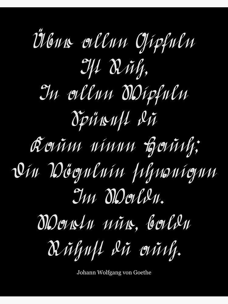 I with the headings wandrers nachtlied and ein gleiches (another one). Both were first edited together in his 1815 works vol. Written in 1776 (der du von dem himmel bist) and in 1780 (über allen gipfeln), they are among goethe's most famous works. Zwar findet sich davon nichts in seiner kurzen notiz an charlotte von stein vom 12. Es kann davon ausgegangen werden, dass „wanderers nachtlied" nicht von irgendeinem müden wandersmann handelt, sondern goethe hier auch und vor allem von sich selbst spricht.